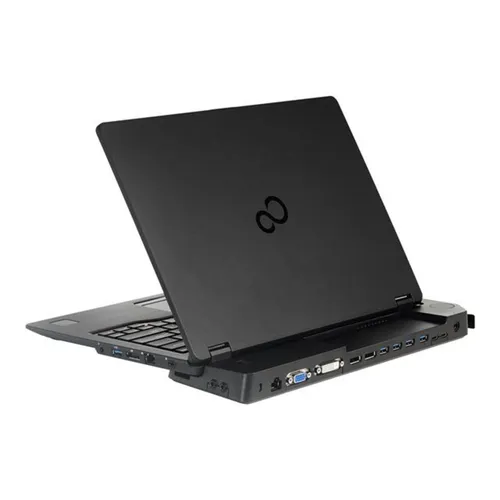 Dockingstation für Fujitsu-Notebooks mit zahlreichen Anschlüssen und 90 W Netzteil.