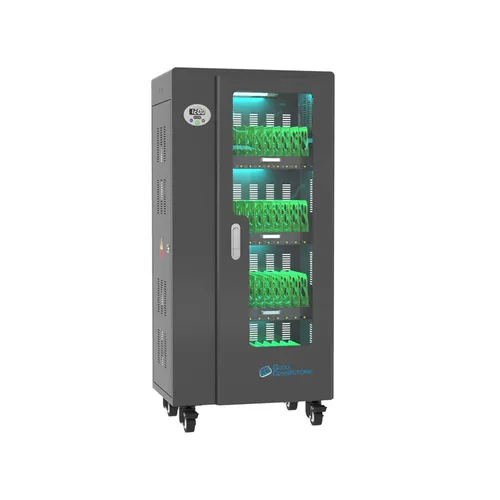 Mit dem innovativen Tablet-Ladewagen begleitet Sie Good Connections® auf den Weg der Digitalisierung und sorgt dafür, dass ihre Geräte immer einsatzbereit und geladen sind, wenn sie gebraucht werden. Sichere Aufbewahrung und energieeffiziente sowie ressourcenschonende Ladetechnik – durch seine Flexibilität und Vielseitigkeit ist der UL-zertifizierte Tablet-Ladewagen von Good Connections® der ideale Begleiter für Ihr Projekt im Bildungswesen, Gesundheitswesen, Industrie, Tagungsstätten, Hotels und der Gastronomie. Machen Sie sich keine Gedanken mehr darüber ob Sie das passende Ladegerät für ihr Tablet zur Hand haben, denn durch die USB-Ports mit intelligenter IC-Ladesteuerung benötigen Sie nur noch eine Standard-Steckdose für bis zu 65 Tablets. Eine in jeder Ladeebene angebrachte UV-C Lampe sorgt umweltfreundlich und ohne Chemie für sterilere Verhältnisse und eine verbesserte Hygiene. Die ausziehbaren und nummerierten Fächer dienen der einfachen Zuordnung der Geräte zu den einzelnen Nutzern.