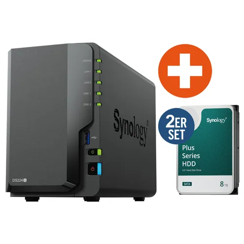 Synology DS224+ NAS System 2-Bay 16 TB inkl. 2x 8 TB Synology HDD HAT3310-8T
