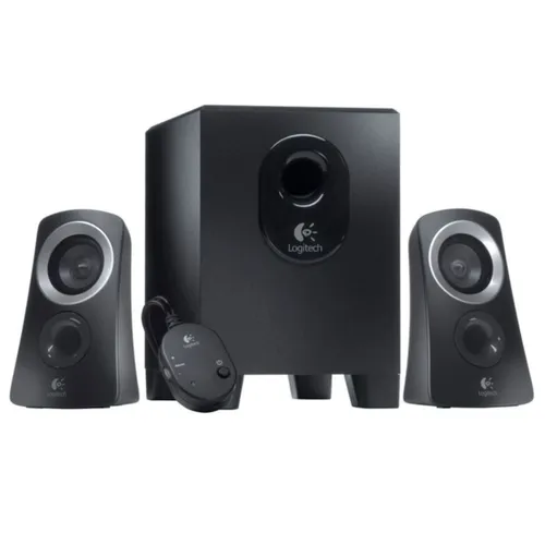 - Dieses 2.1-Lautsprechersystem liefert einen ausgewogenen Klang und bietet dank eines kompakten Subwoofers kräftige Tiefen. Verbinden Sie ein beliebiges Gerät über den 3,5-mm-Eingang und schalten Sie mit dem kabelgebundenen Steuergerät das System bequem ein bzw. aus und regeln Sie die Lautstärke.