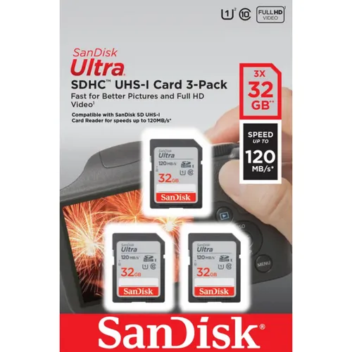 SanDisk Ultra SDHC Class 10, UHS-I 32GB, 3er Pack