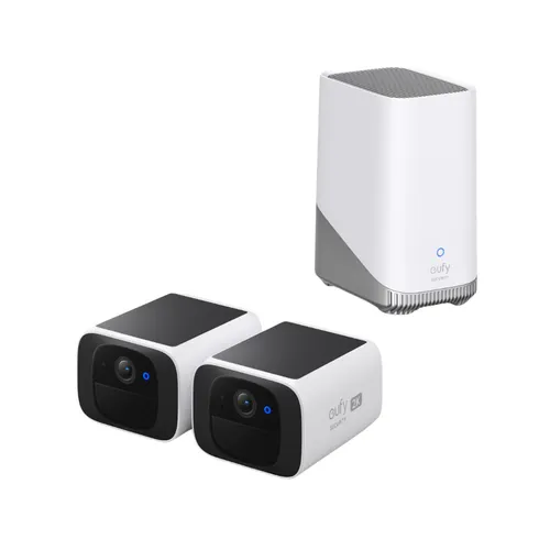 eufy Security S220 solarbetriebene Outdoor-Sicherheitskamera, 2+1 Set mit Homebase 3