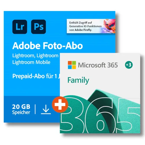 Microsoft 365 Family (15 M.) &Adobe Foto-Abo (12M.) | 20 GB | Download & Key
