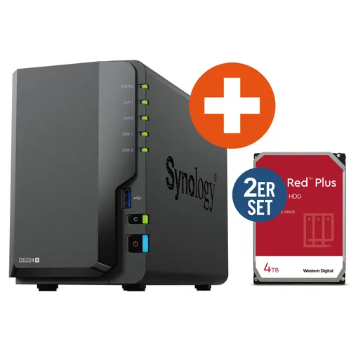 Synology Diskstation DS224+ NAS System 2-Bay inkl. 2x 4 TB WD Red Plus WD40EFPX