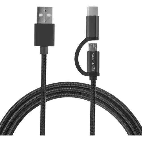 4smarts Micro-USB + USB-C Kabel ComboCord 1m textil schwarz