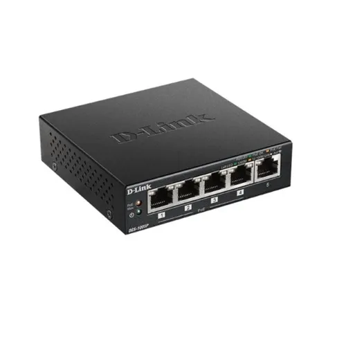 The D‑Link DGS‑1005P 5‑Port Desktop Gigabit PoE+ Switch enables you to connect Power over Ethernet (PoE) devices such as wireless access points (APs), network video cameras and IP phones to the network. Built with home and small business users in mind, the DGS‑1005P is compact and operates silently, making it ideal for most rooms and offices.