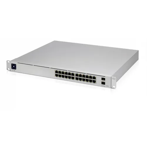 The Switch Pro 24 PoE (USW Pro 24 PoE) is a fully managed switch with (16) GbE, 802.3at PoE+ RJ45 ports, (8) GbE, 802.3bt PoE++ RJ45 ports, and (2) 10G SFP+ ports. The USW Pro 24 PoE combines a rich set of Layer 2 features with advanced Layer 3 tools including inter-VLAN routing, static routing, and a DHCP server. The USW Pro 24 PoE is the ideal access layer switch for any UniFi system. It combines up to 400W of PoE power with SmartPower RPS (USP RPS) power redundancy. The switch can also be monitored and configured from anywhere with the powerful, intuitive UniFi Network web application and mobile app.