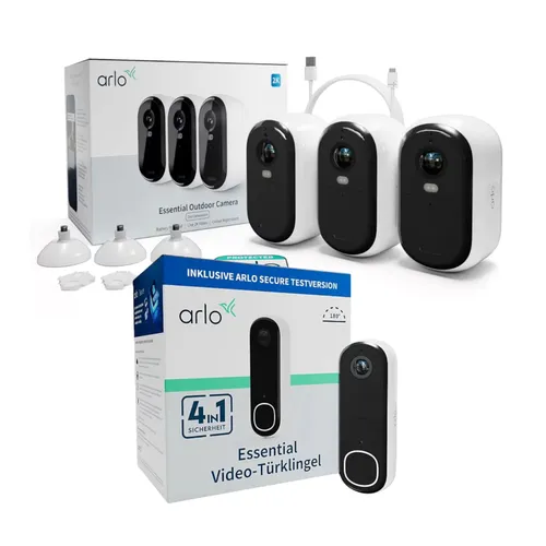 Arlo Essential 2 2K Outdoor Kamera außen - 3er Set weiß + Doorbell