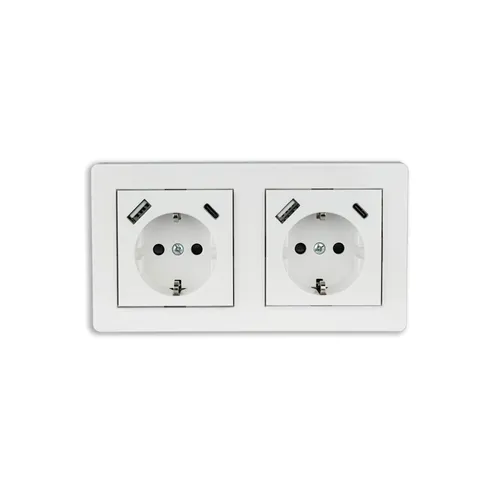 Kabelmeister Einbausteckdose 2-fach m. Schnelllader (20W, PD3.0), USB, weiss