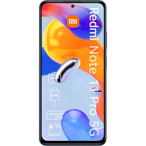 Смартфон Xiaomi Redmi Note 11 Pro 5G в синем цвете с 128 ГБ памяти - это мощное и надежное устройство. Операционная система - Android™ 11.0, и на 16,9-сантиметровом (6,67 дюймовом) дисплее вы можете наслаждаться своим контентом в высоком качестве. Камера с 108,0 мегапикселями обеспечивает первоклассные фотографии и видео. 8-ядерный процессор (2x 2,20 ГГц + 6x 1,70 ГГц) а также 128 ГБ памяти и слот для microSD-карты обеспечивают достаточно места для всех ваших приложений и файлов. С 5G, Wi-Fi 5 (802.11ac), Bluetooth, NFC и GPS вы всегда имеете быстрое подключение к вашей среде. Смартфон не имеет брендирования и блокировки SIM-карты